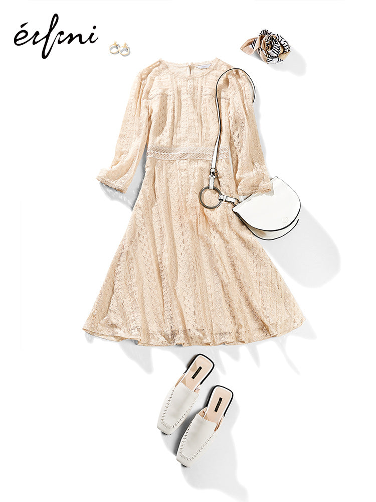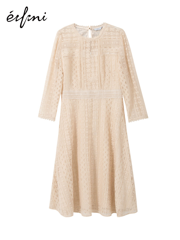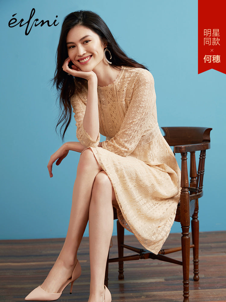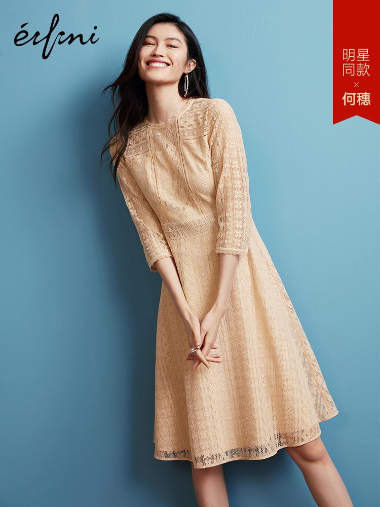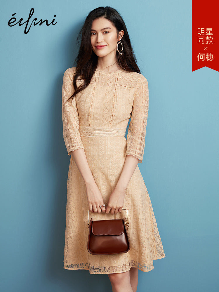 何穗同款伊芙丽裙子2019夏装新款流行复古裙高腰中袖蕾丝连衣裙女