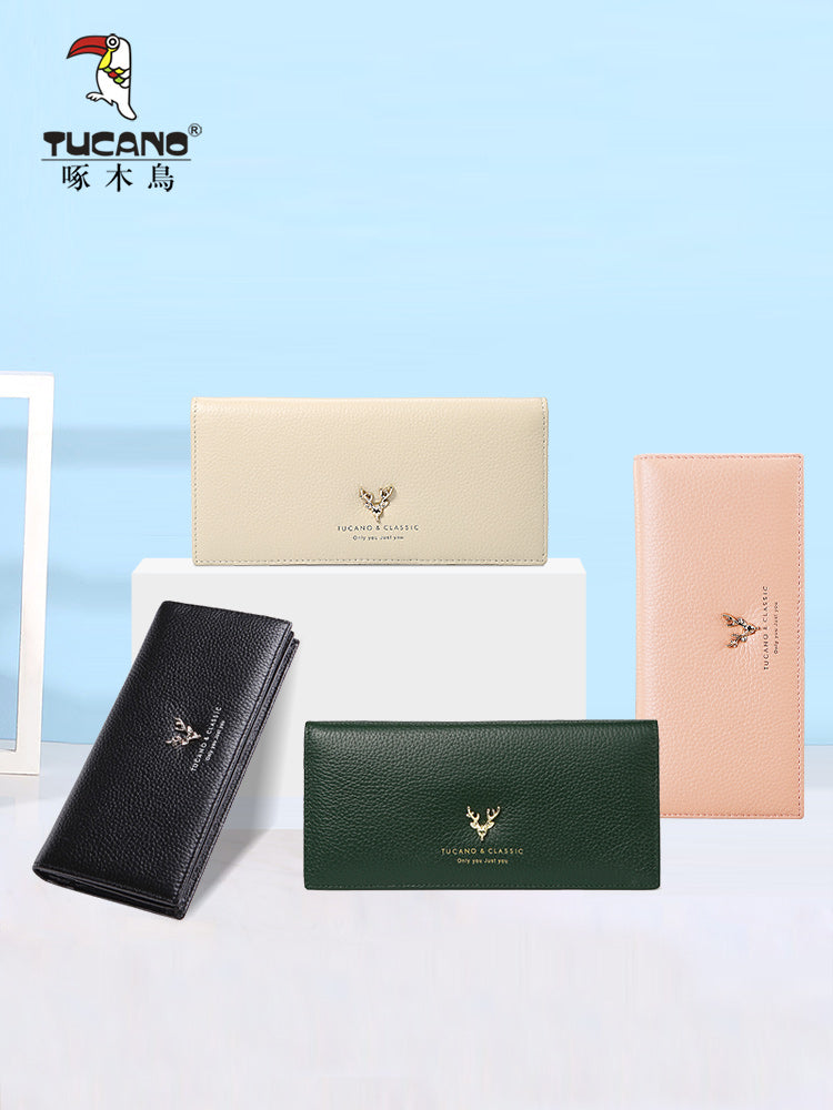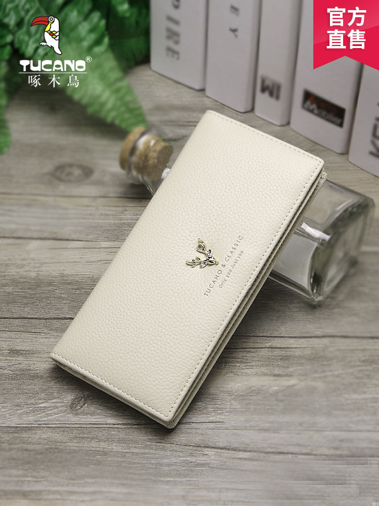 啄木鸟钱包新款牛皮钱包女长款薄小清新日韩简约时尚个性真皮钱夹