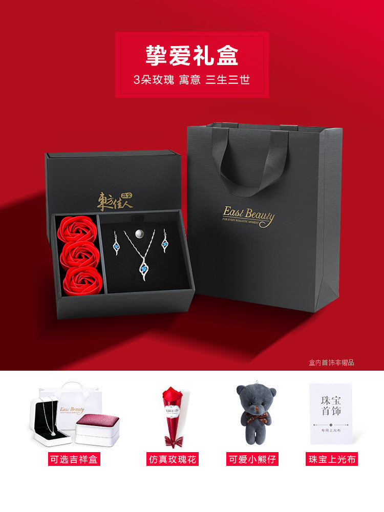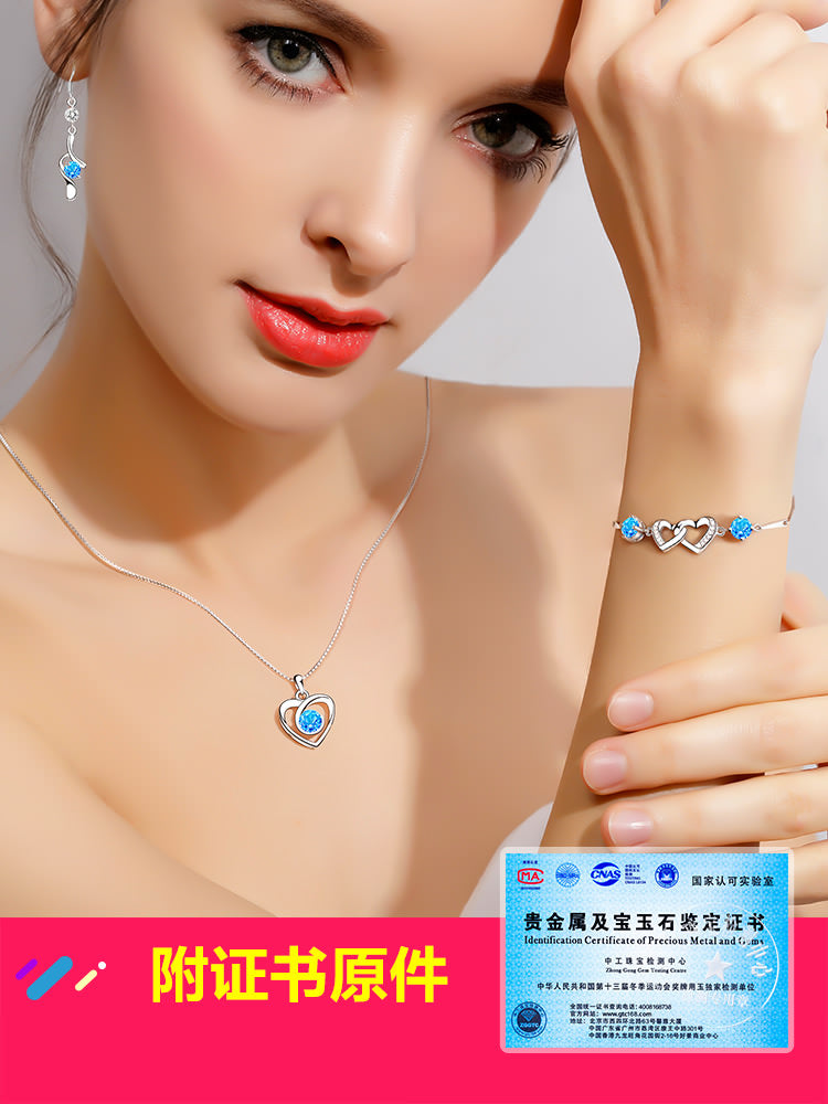 天然紫水晶纯银首饰品套装女项链耳环三件套520情人节礼物送女友