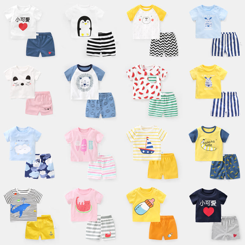 婴儿衣服纯棉短袖套装儿童夏装幼儿男童女宝宝外出服两件套Y4606