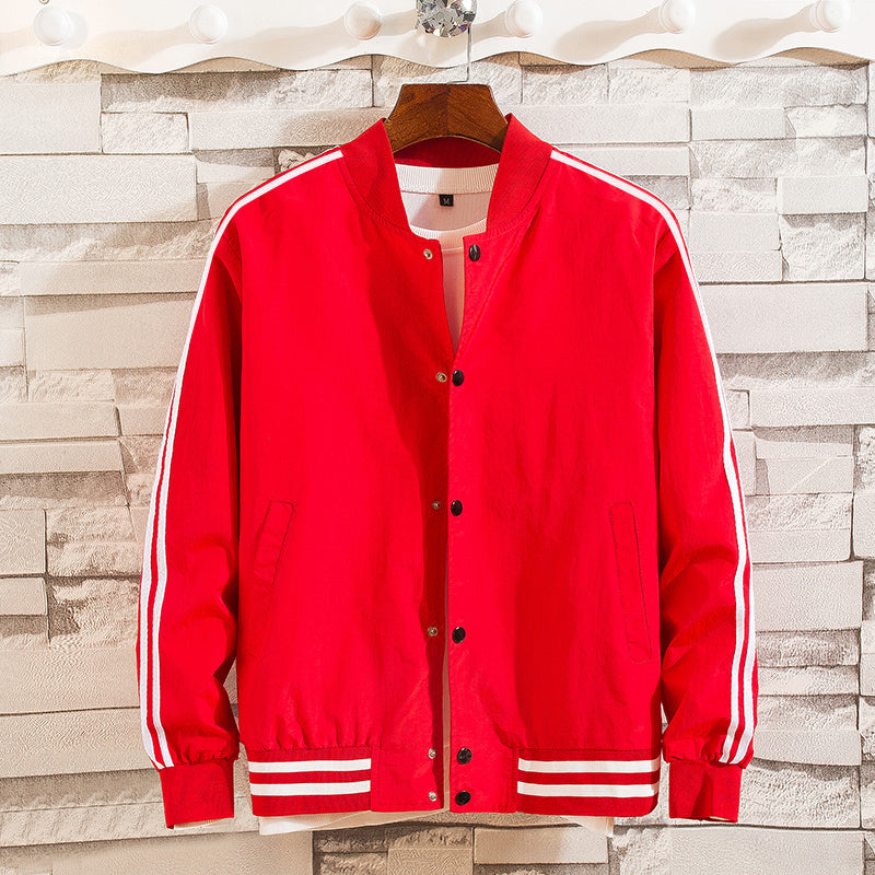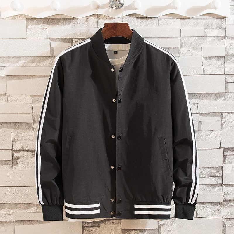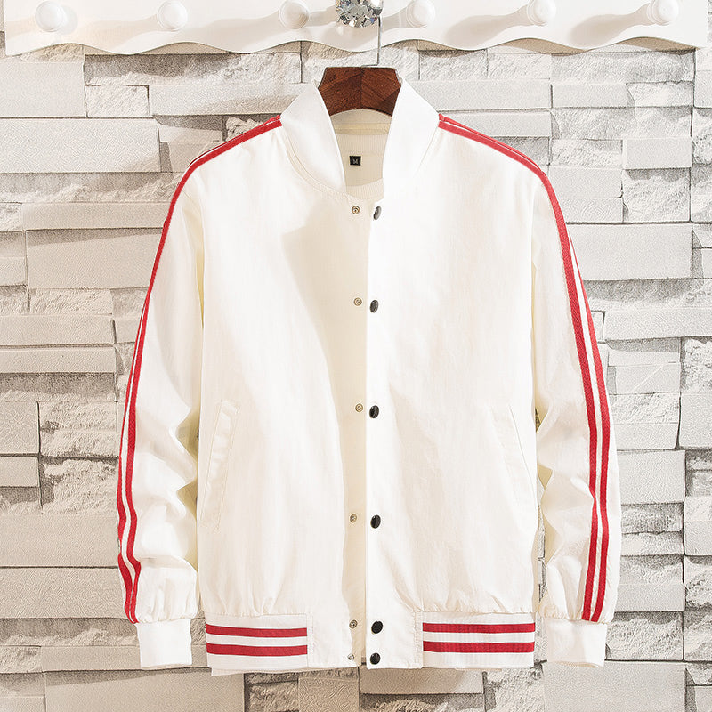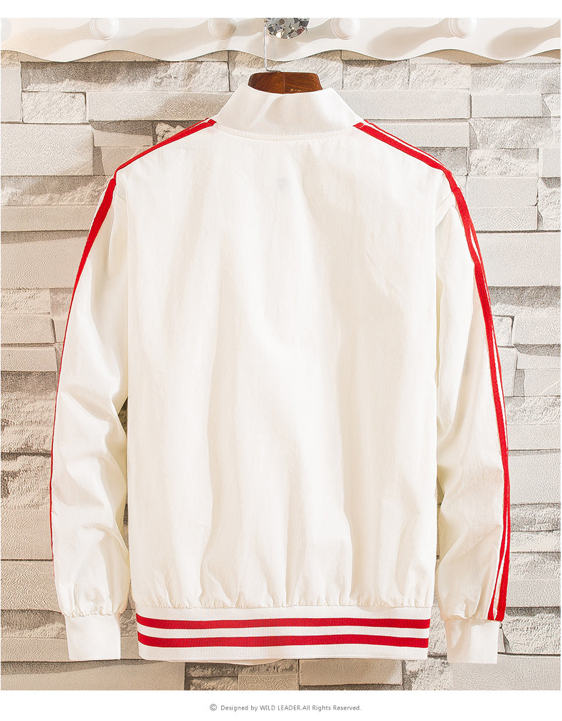 春秋季外套男士新款韩版潮流学生两条杠白色夹克棒球服薄款衣服男