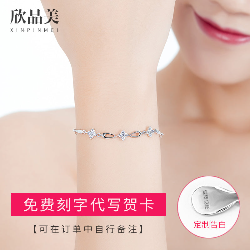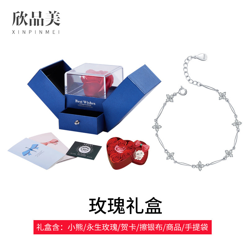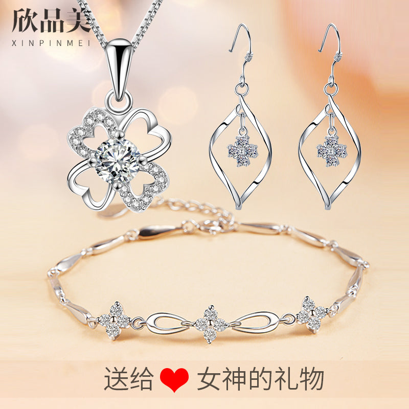 纯银项链手链耳坠首饰套装女三件套银饰生日 520情人节礼物送女友