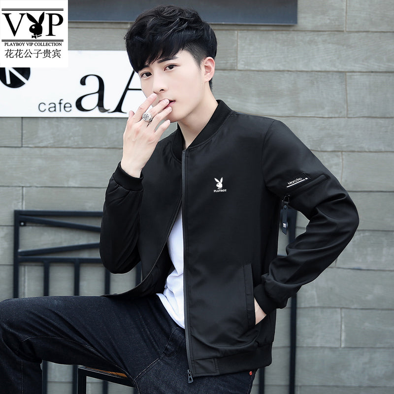 花花公子贵宾夹克男春秋冬休闲夹克帅气2019新款男士外套