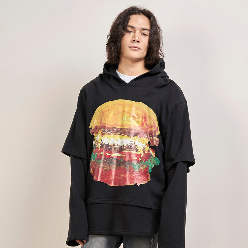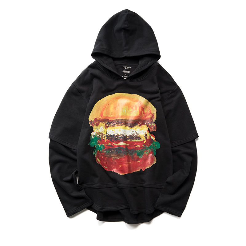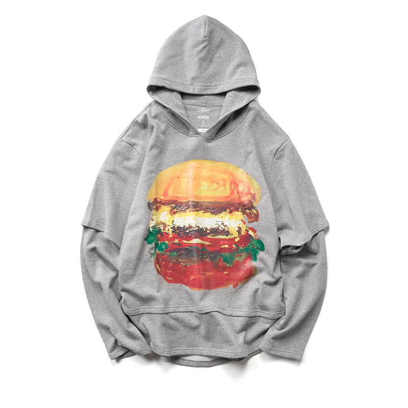 Cream SODA联名汉堡印花艺术卫衣 高街长袖T恤男士 潮牌
