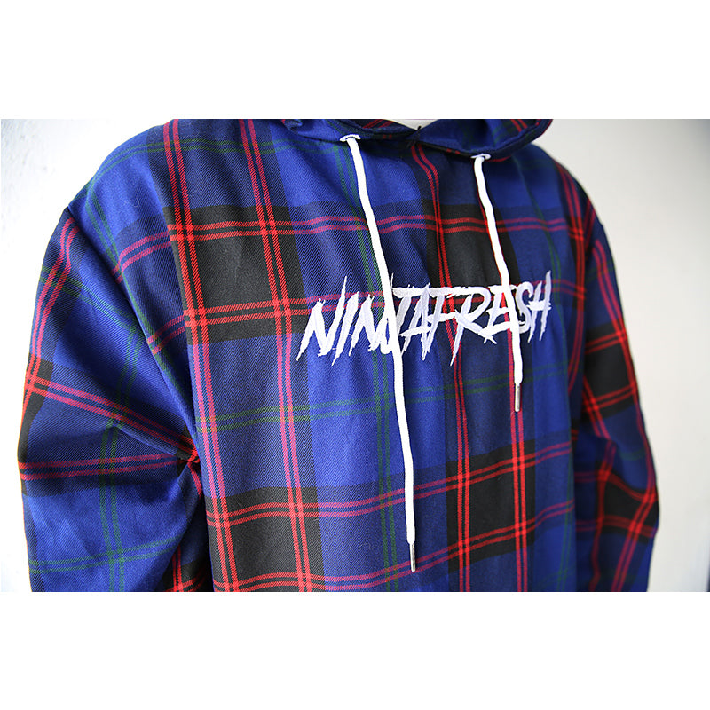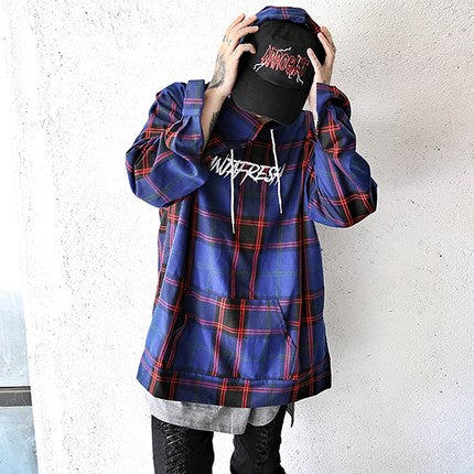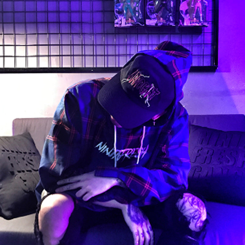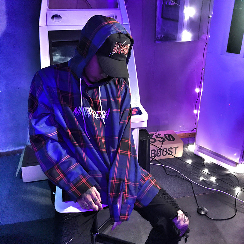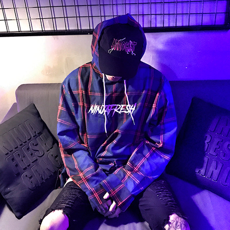 Mr fortyNFG高街刺绣情侣蓝红格子zico宋闵浩椰子连帽套头卫衣