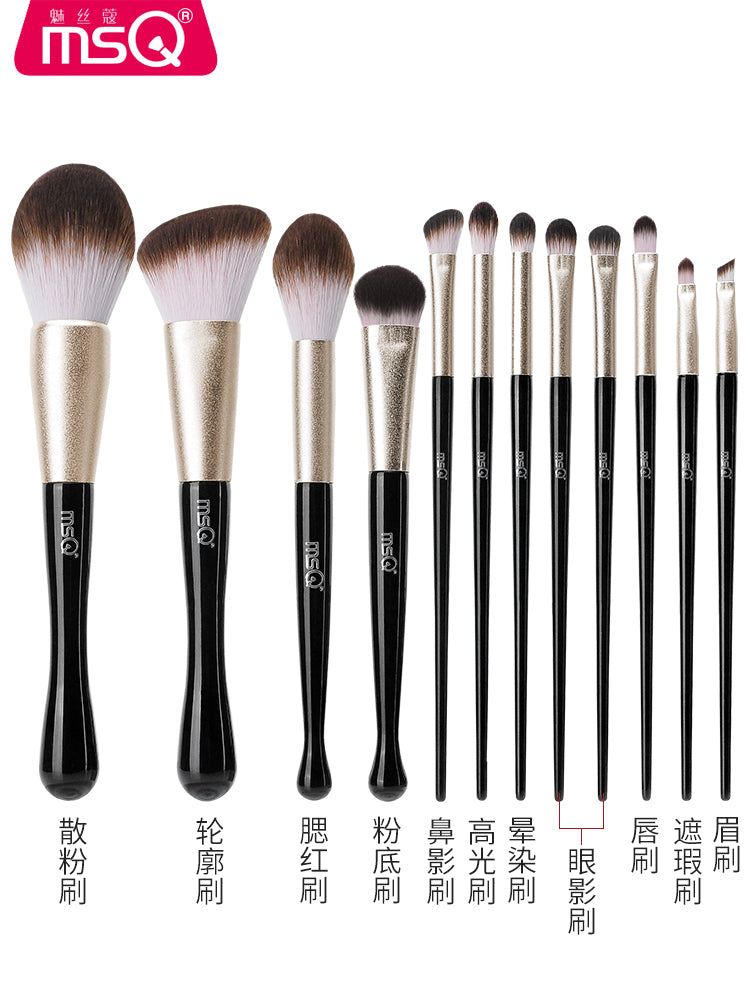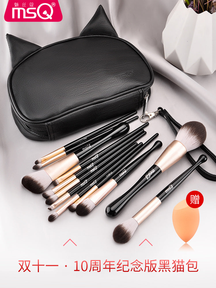 MSQ/魅丝蔻12支黑猫化妆刷套装初学者全套粉刷刷子眼影刷彩妆工具